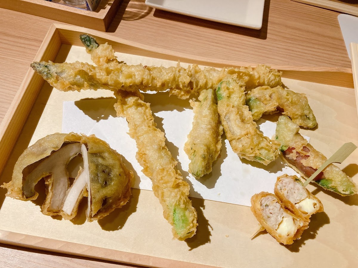 The menu leans heavily into well-loved Japanese flavors, and you can tell care goes into each dish. One of the standout items is the Asparagus Roll, which balances freshness with savory depth and pairs effortlessly with drinks. The eel dishes are another highlight, rich and satisfying without being heavy. Then there’s the 穴子土鍋ご飯, a pot rice specialty that arrives fragrant and hearty, making it perfect for sharing at the table. Chicken dishes, especially the 鶏肉 options, are prepared simply but confidently, letting texture and seasoning do the talking.